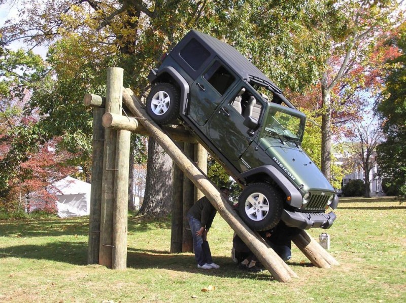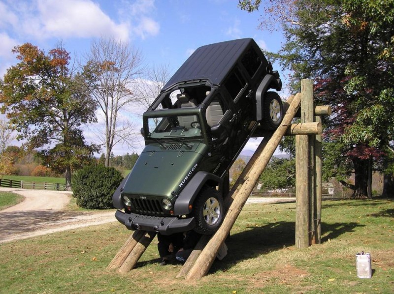 But it wasn’t just off-roading; a more unusual task was to create a log display stand for a Wrangler, nose-down and at an angle of about 50 degrees!