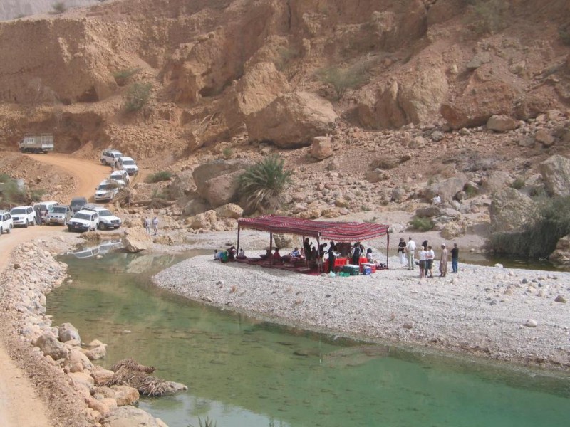 This was old stomping grounds for the BATT team having set up driving events here before but unfortunately many of the old wadi routes that we had used in the past some which were rarely driven had been destroyed completely by the cyclone of 2007. In fact some areas were unrecognisable such was the damage done including one wadi which according to the GPS was about 5 metres higher than it was when we drove it before!!! This called for a complete re think of the routes to be used and finally after five days we hand built and cleared a route into an lunch area we had used before which was beside a cliff covered in ancient rock art. 80 clients in 25 vehicles enjoyed a days trip in the wilds of Oman driving a route never seen by tourists.