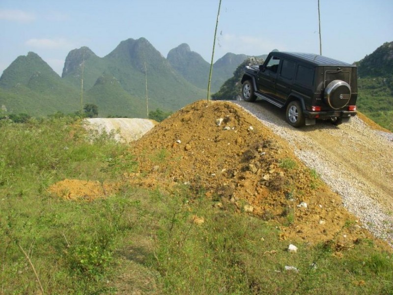 Working with local labour and machines the three routes were created. Two of these were for the GLK, GL and ML classes of vehicle and were to be driven by the local press whilst the third was for the awesome G55 Wagon which was a extreme demonstration route that the journalist were driven over. This route was the most challenging to build being that there was the small issue of a 10 metre cliff in the way, an old water buffalo cart track which was not wide enough for the G Wagon in places and a very rough and rocky trail over a pass to overcome. Ten days of working with a local team helped by the ritual sacrifice of a chicken and few hundred fire crackers let off obviously helped and just before the event started the trails were completed.